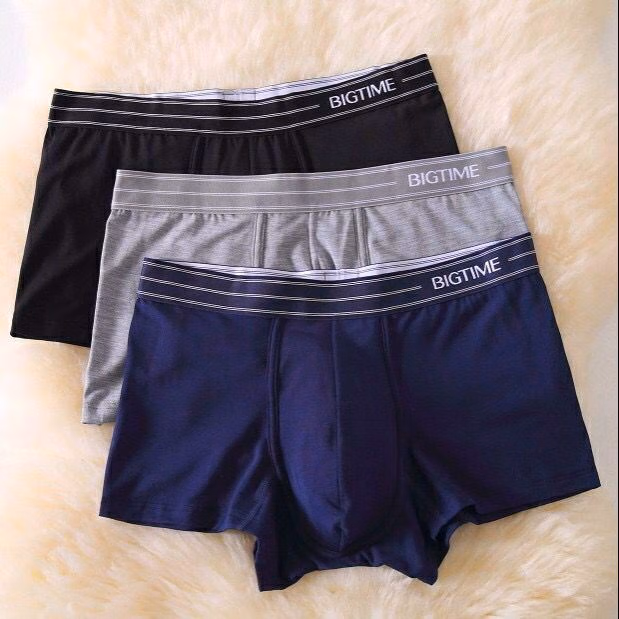 】大时代BIGTIME男士平角抗菌内裤一码通穿三条礼盒 共带原装盒 黑灰藏青三色 3条 均码 100-200斤可穿