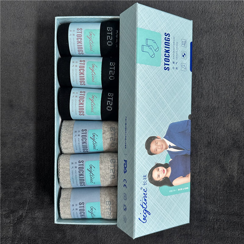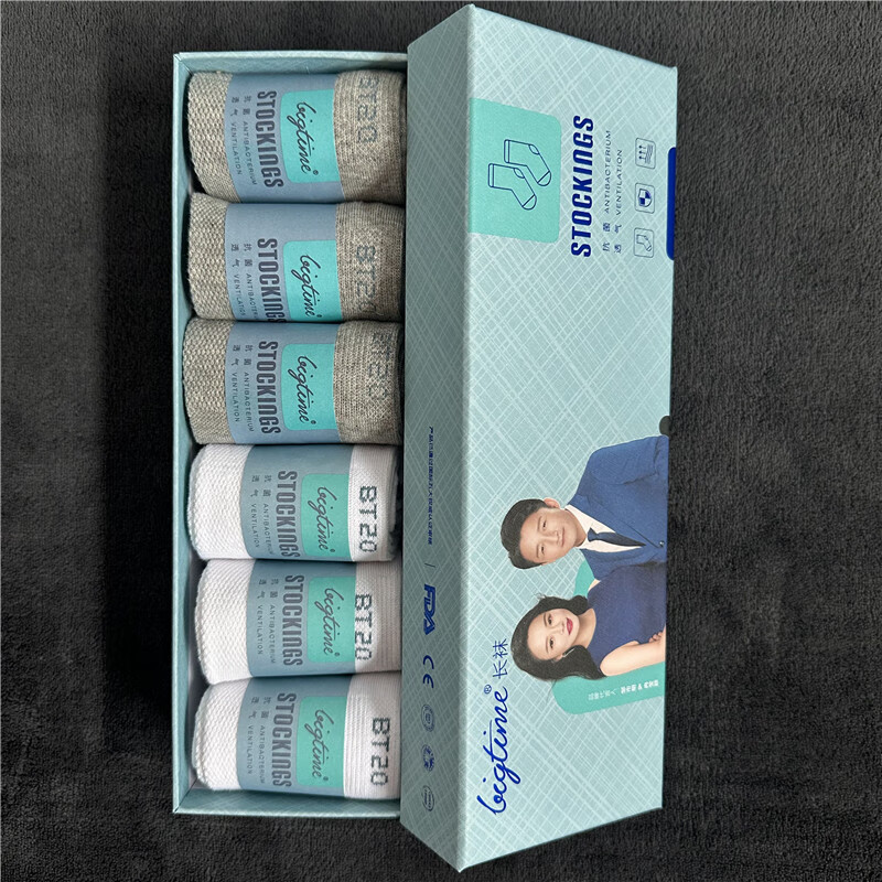 大时代防臭袜新品爱生活LELF全黑长袜短袜隐形袜防伪可查 爱生活长袜1盒标配 2黑+2灰+2白